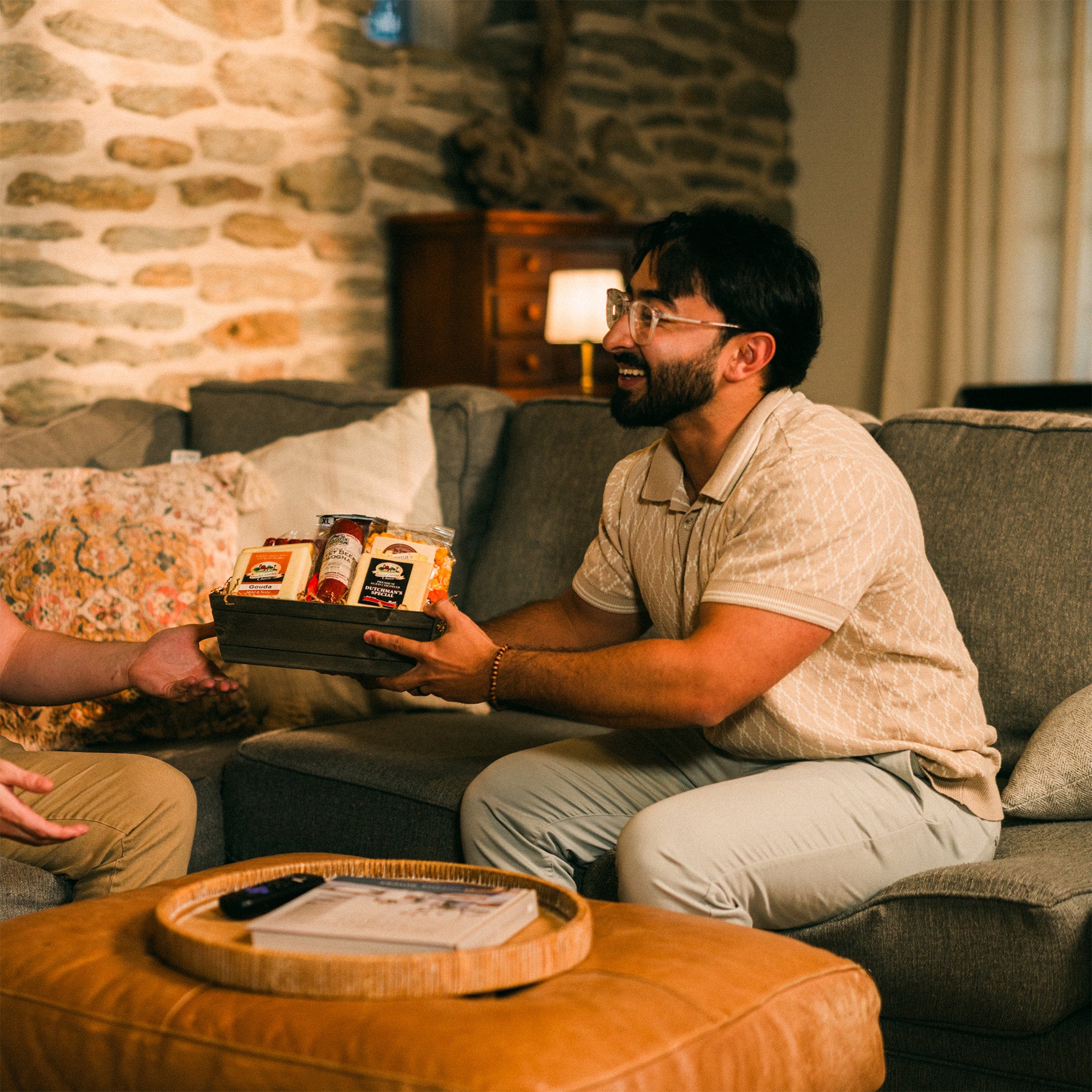 Each basket is crafted with country snacks, meats and cheeses that are tasty and will make them feel special.